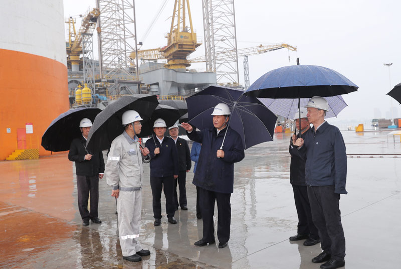 6月13日下昼,习近平冒雨来到中集来福士海洋工程有限公司烟台基地。“蓝鲸1号”钻井平台巍峨伫立、“泰山”龙门吊高耸入云,习近平撑着伞边走边看,详细相识企业走自主立异生长之路、开展高端海洋工程装备自主设计研发制造情形。听说“蓝鲸1号”去年创造了可燃冰开采时间和产量两项天下纪录,习近平勉励他们继续起劲。总书记同现场的工人们逐一握手,他说,基础的、焦点的工具是讨不来买不来的,要靠我们自力重生、自主立异来实现。我看你们有这个信心,希望你们迎难而上、再接再厉。(记者 张晓松、谢环驰)