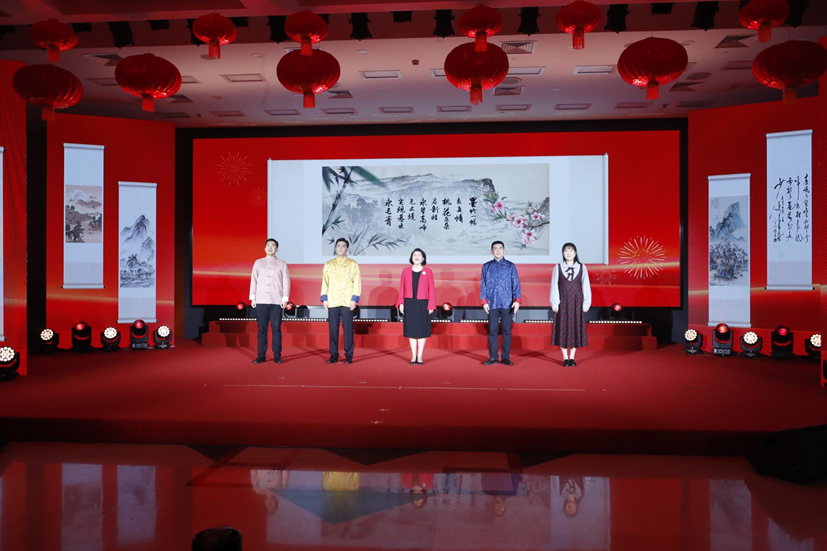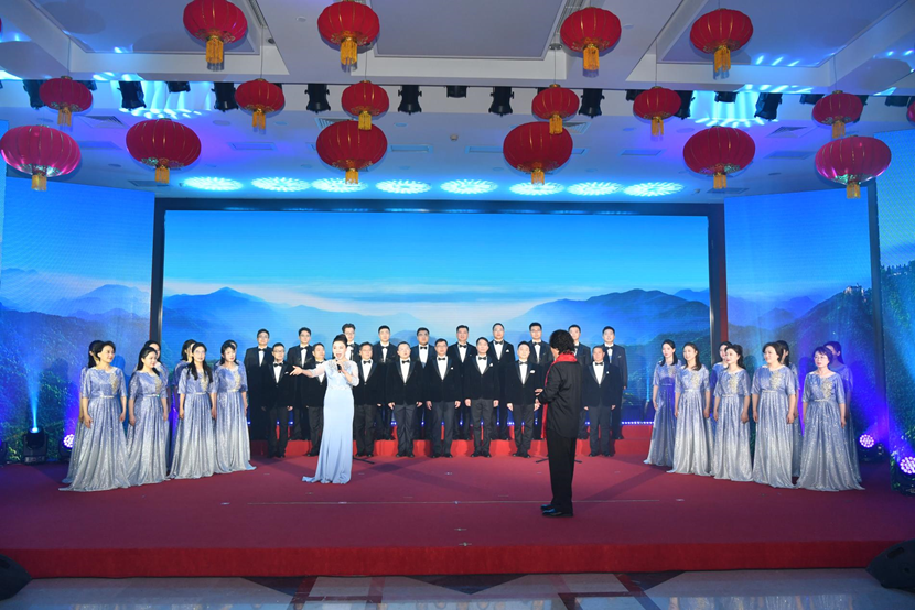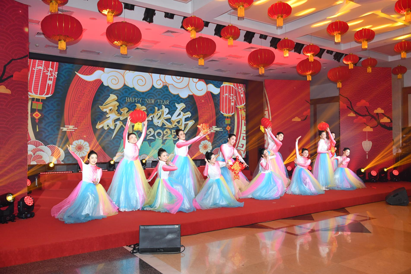 团拜会上欢声笑语回荡,干部职工自编自演的舞蹈、歌曲、情景剧、国风展示等节目精彩纷呈,充分展现了宽大干部职工为国资央企事业拼搏贡献的精神风貌,赢得了阵阵热烈掌声,会场充满了欢喜、祥和、喜庆的节日气氛。最后,各人齐声高唱《中国 中国 鲜红的太阳永不落》,将气氛推向热潮。