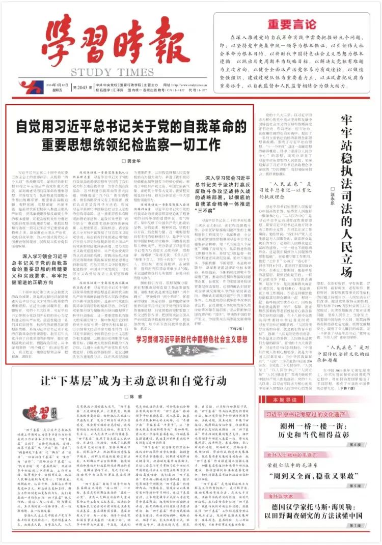 二十届中央纪委三次全会最重大的政治效果,就是正式提出并深刻叙述习近平总书记关于党的自我革命的主要头脑,这是全会的灵魂所在、精髓所在。党的十八大以来,习近平总书记向导全党以亘古未有的刻意力度推进周全从严治党,创造性提出一系列具有原创性、标记性的新理念新头脑新战略,形成习近平总书记关于党的自我革命的主要头脑,指引百年大党开发了自我革命的新境界。我们要提高政治站位,增强政治自觉,从中深刻意会“两个确立”的决议性意义,真正把这一主要头脑体会深、掌握准、落到位。