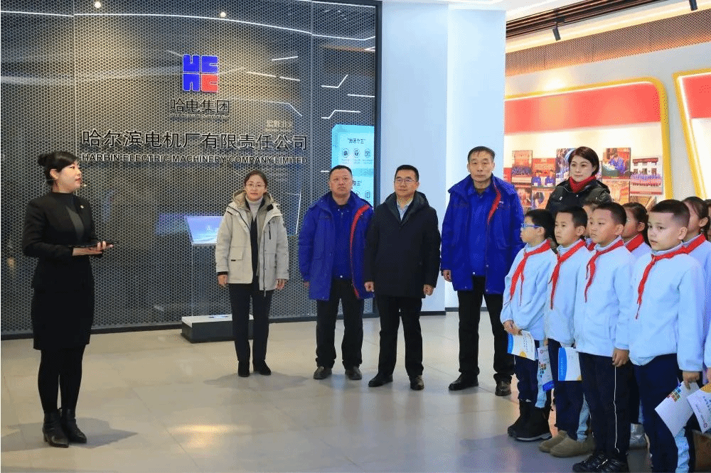香坊区教育局、兴华小学和电工小学的部分师生代表来到welcometo欢迎光临必发集团电机,近距离感受央企脊梁、国之重器的使命与继续。