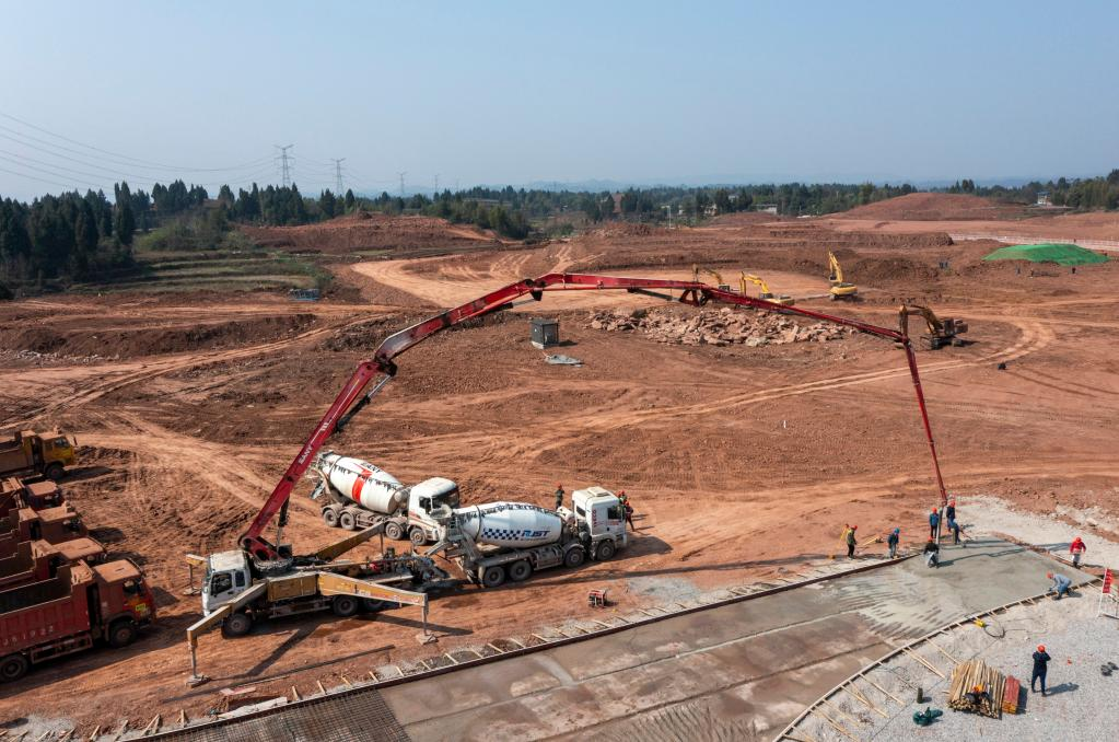 在重庆市潼南区小渡镇 ,国网重庆市电力公司的建设者们加紧举行川渝1000千伏特高压交流工程(重庆段)基础工艺试点。这标记着首次落点重庆的特高压工程进入周全建设期。