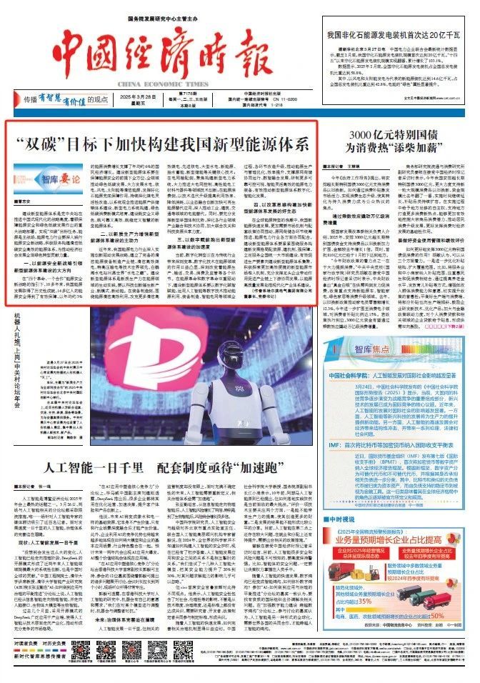 3月28日,国务院生长研究中心主管主理的《中国经济时报》头版头条“智库要论”专题刊发welcometo欢迎光临必发集团集团董事长、党委书记曹志安《“双碳”目的下加速构建我国新型能源系统》一文。
